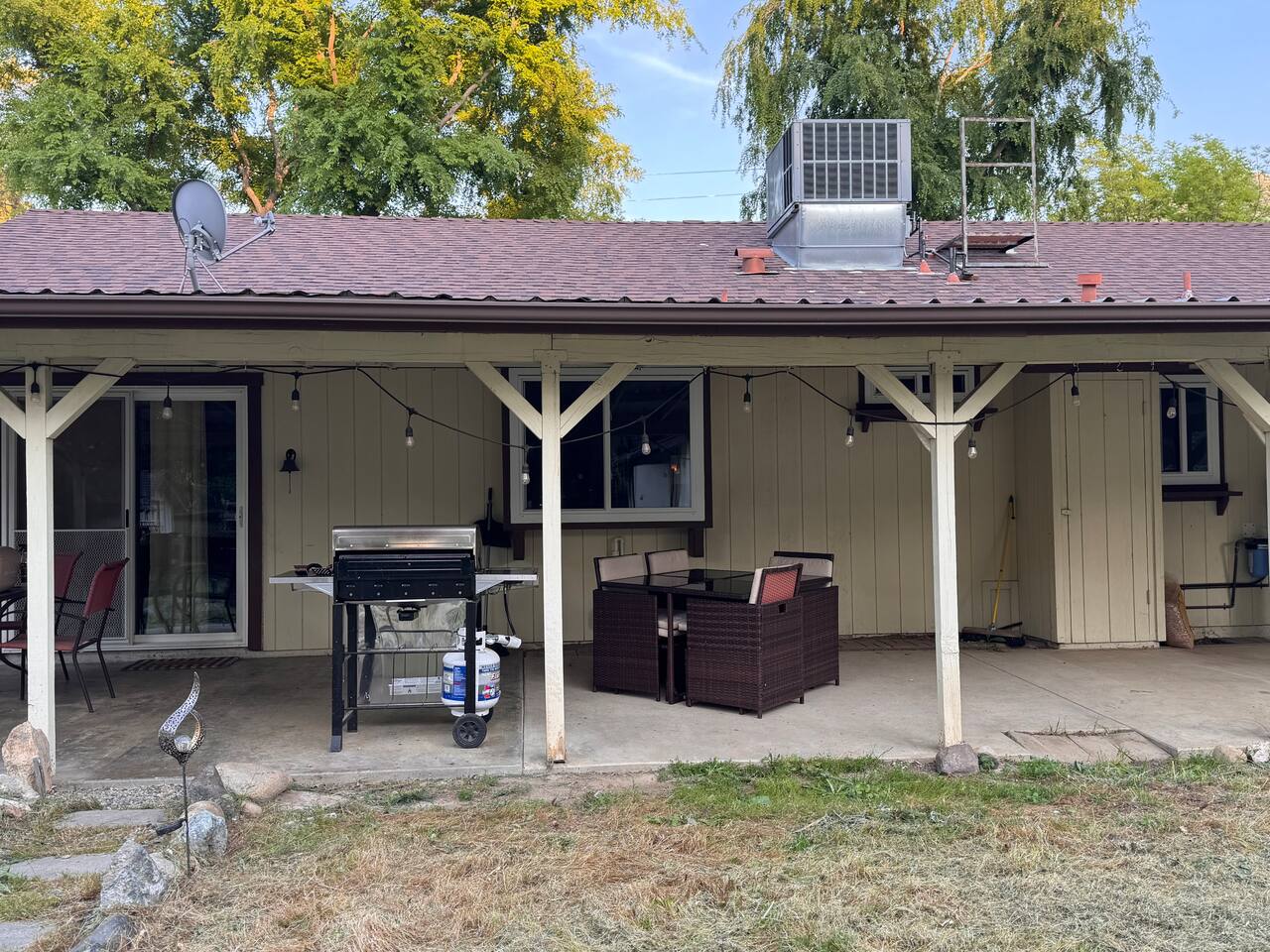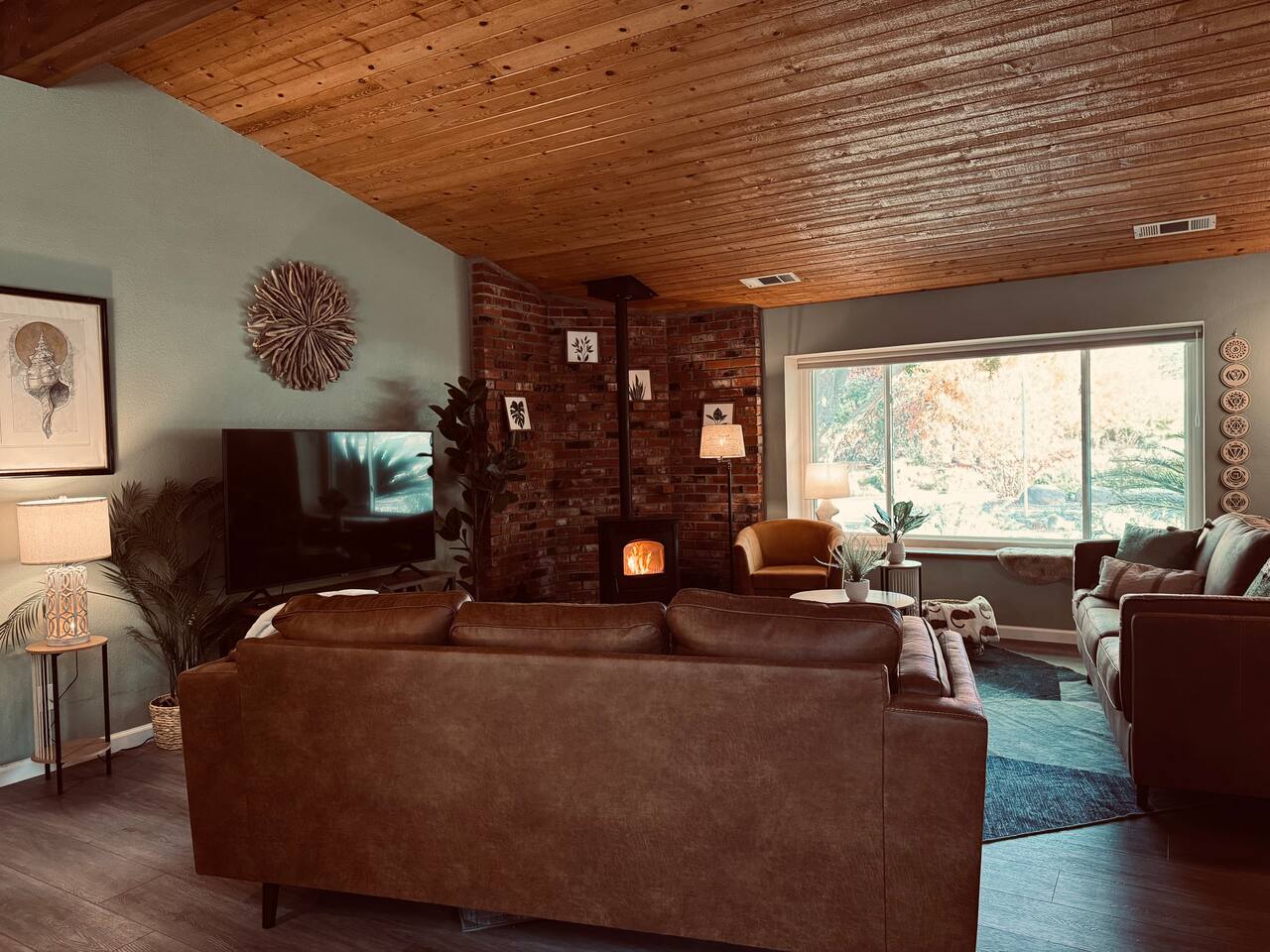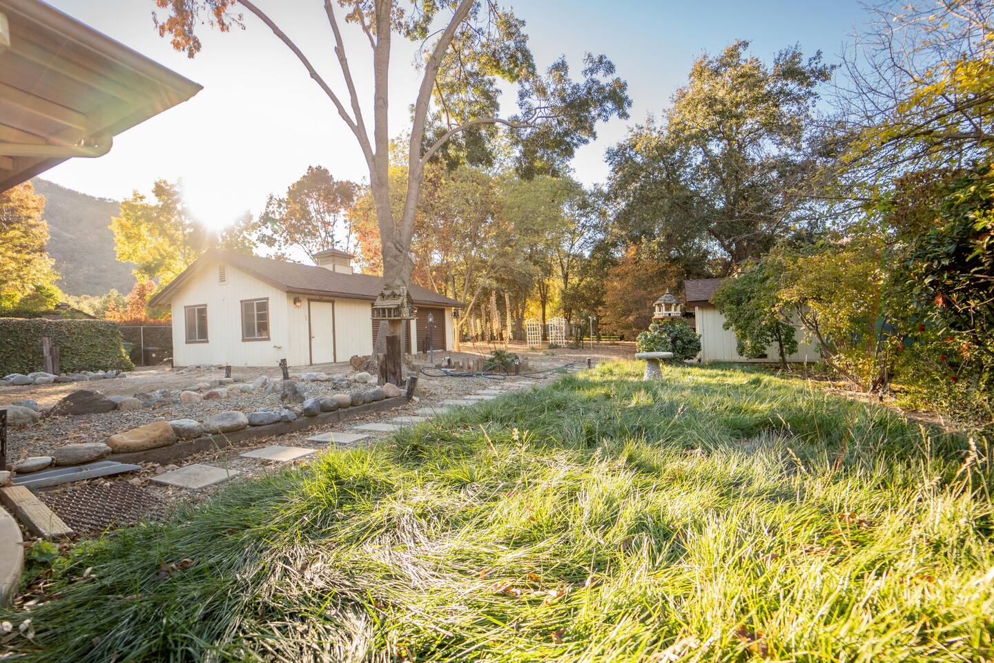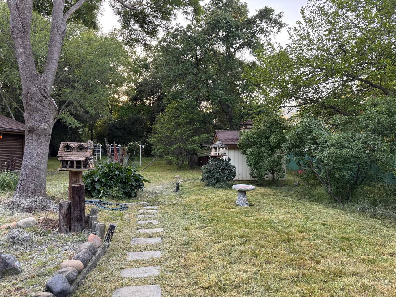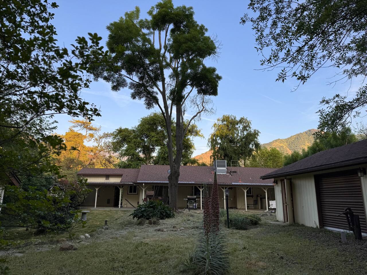 Spacious home 7 miles again from Sequoia. Spa with waterfall suitable for 6 people. The yard is all fenced for your pets and family to enjoy privacy and open space. High speed internet. 3 spacious bedrooms. Full bathrooms with all the little things you need when traveling. TV connected to the internet to enjoy all your favorite movies. Outdoor Propane Firepit, Propane BBQ (we include the propane) Pellet wood stove. Italian coffee machine with coffee bean grinder. We provide dog beds.