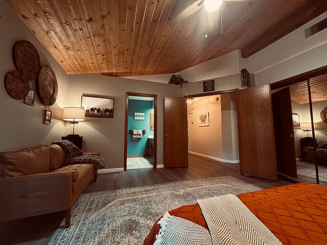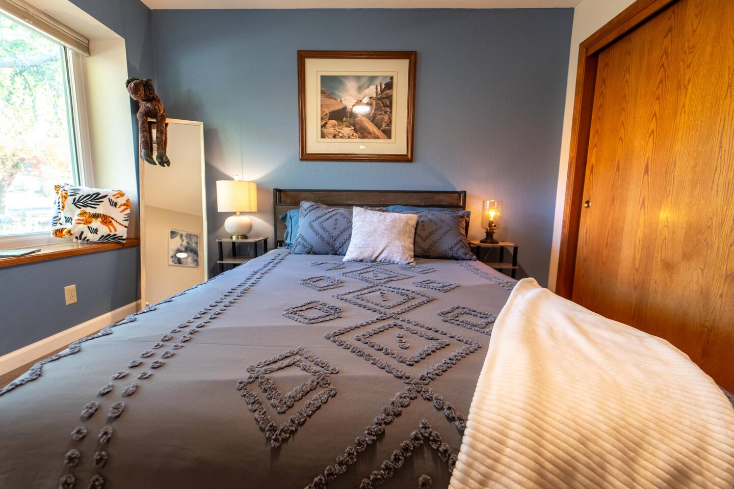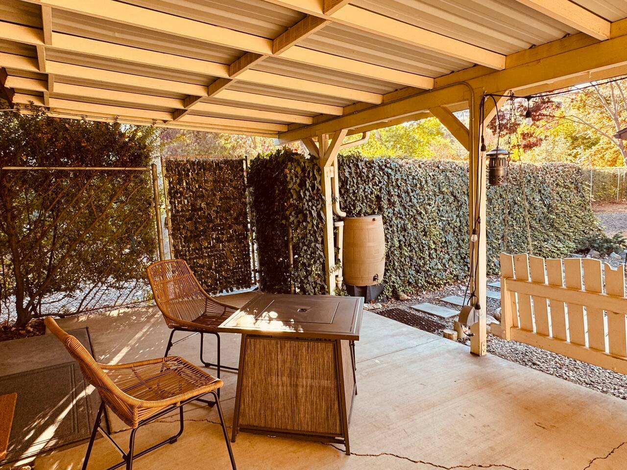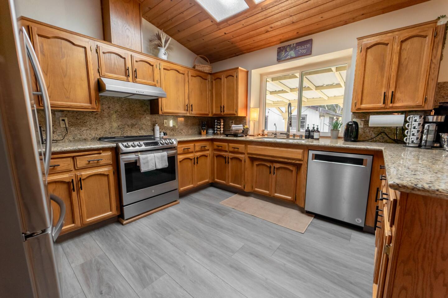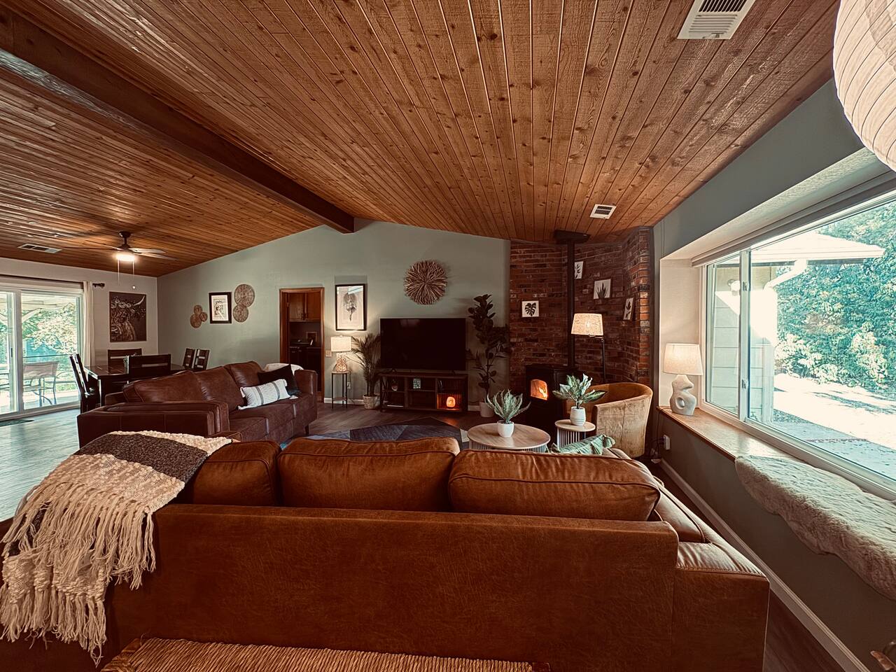 Spacious home 7 miles again from Sequoia. Spa with waterfall suitable for 6 people. The yard is all fenced for your pets and family to enjoy privacy and open space. High speed internet. 3 spacious bedrooms. Full bathrooms with all the little things you need when traveling. TV connected to the internet to enjoy all your favorite movies. Outdoor Propane Firepit, Propane BBQ (we include the propane) Pellet wood stove. Italian coffee machine with coffee bean grinder. We provide dog beds.