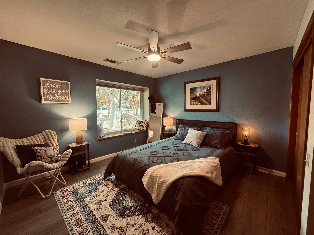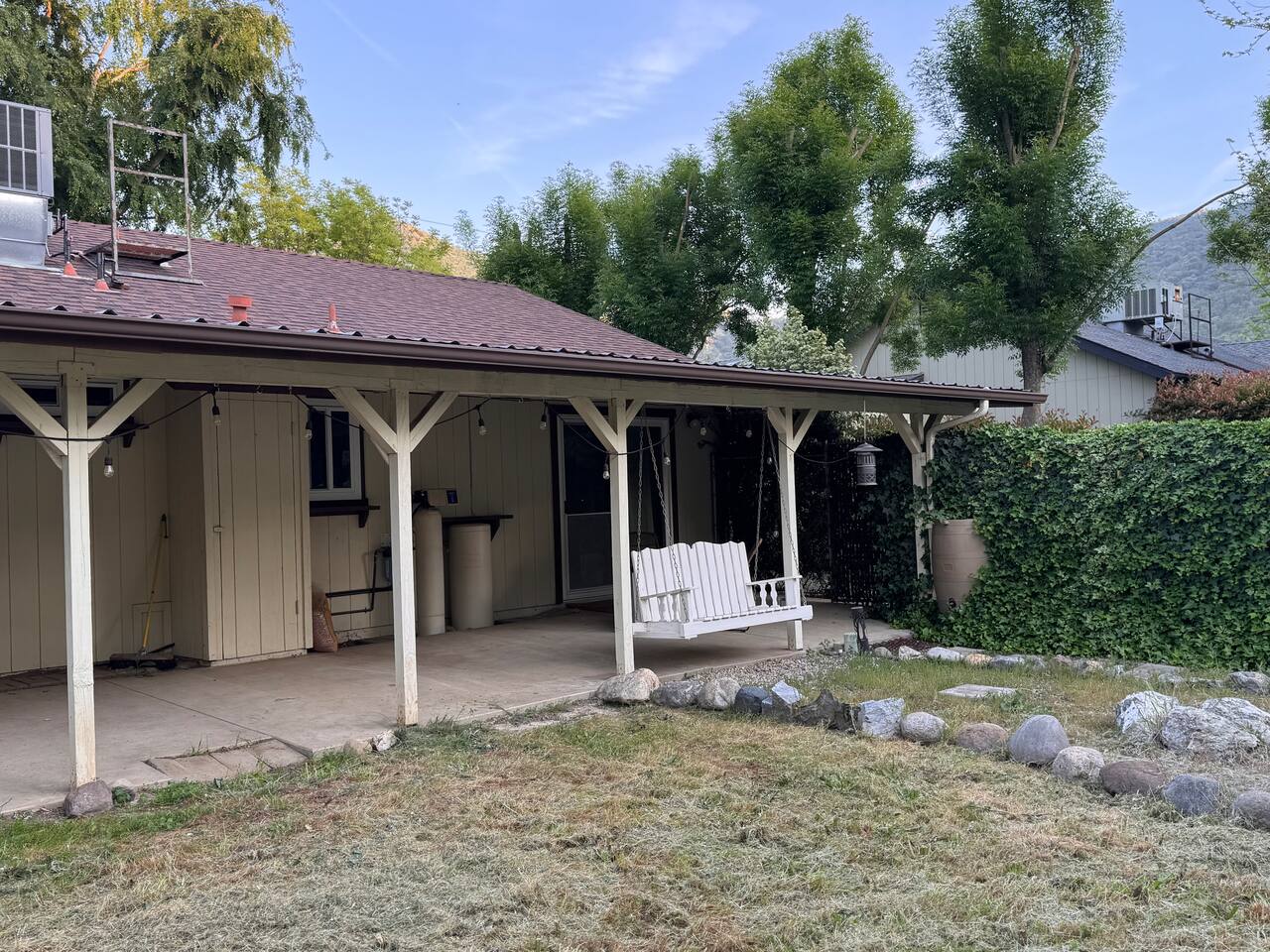Welcome to your spacious Three Rivers retreat just 7 miles from Sequoia National Park. This 3-bedroom, 2-bathroom home offers a fully fenced yard for privacy, high-speed Wi-Fi, and all the comforts you need for a relaxing, pet-friendly getaway. Enjoy cozy evenings by the pellet stove, stream your favorites on the smart TV, and savor fresh coffee from the Italian machine. Perfect for families, friends, and furry companions! Beautifully decorated home, Earthy feeling, for a very well deserved retreat away from Home. 3 Bedrooms- 2 full bathrooms. Fully fenced backyard. Spa suitable for 6 people. ⭑Master Bedroom:⭑ ✔ Queen bed with premium bedding ✔ Spacious layout and closet ✔ Dog bed provided ⭑Second Bedroom:⭑ ✔ Queen bed with premium bedding ✔ Spacious layout and closet ✔ Dog bed provided ⭑Third Bedroom:⭑ ✔ Queen bed with premium bedding ✔ Spacious layout and closet ⭑Living Room:⭑ ✔ Large, open space for up to 6 guests ✔ Smart TV with internet streaming ✔ Board games for family fun ✔ Pellet wood stove (pellets provided) ⭑Kitchen and Dining Area:⭑ ✔ Fully equipped kitchen with all appliances ✔ Dishwasher, refrigerator, oven, microwave ✔ Mixing bowls, pots, pans, silverware, wine glasses ✔ Italian coffee machine with coffee bean grinder ✔ Dining table for group meals ⭑Bathrooms:⭑ ✔ One bathroom with bathtub ✔ One bathroom with walk-in shower ✔ Essentials provided (towels, toiletries, etc.) ⭑Outdoor Space:⭑ ✔ Fully fenced yard for privacy and pets ✔ Propane firepit (propane provided) ✔ Propane BBQ grill (propane provided) ✔ Two outdoor tables with chairs ⭑Additional Amenities:⭑ ✔ High-speed Wi-Fi ✔ Dog beds for your pets ⭑Safety and Security:⭑ ✔ Smoke detectors ✔ Secure locks ⭑Entertainment and Connectivity:⭑ ✔ Smart TV with streaming ✔ Board games ✔ Fast Wi-Fi ⭑Heating and Cooling:⭑ ✔ Central heating and cooling ✔ Pellet wood stove ⭑Parking and Facilities:⭑ ✔ Very large private parking area on property ⭑Services:⭑ ✔ Self check-in ✔ Professional cleaning Your stay at this Three Rivers home promises relaxing comfort, family-friendly convenience, and a memorable Sequoia adventure. Book now and start your national park getaway in style! ⭑Conclusion⭑ Don’t miss out—reserve your dates today for a peaceful, pet-friendly escape near Sequoia National Park! About the Area Located in Three Rivers, CA, just 7 miles from the entrance to Sequoia National Park. Enjoy the charm of a quiet neighborhood with easy access to outdoor adventures. Nearby Attractions (up to 10): 7 min to Sequoia National Park entrance 5 min to Lake Kaweah 3 min to Three Rivers Historical Museum 3 min to Sequoia Coffee and Kitchen 4 min to Slick Rock Recreation Area 6 min to Gateway Restaurant & Lodge 45 min to Kings Canyon National Park 3 min to local grocery stores and shops