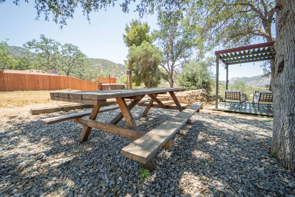 Relax with the whole family at this peaceful retreat, just minutes from Sequoia National Park. Enjoy gorgeous mountain and river views, a private hot tub, and every modern amenity you need—including a fully equipped kitchen, fast Wi-Fi, and an EV charger. Whether you’re soaking in the views or stargazing from the deck, this is your perfect escape into nature.