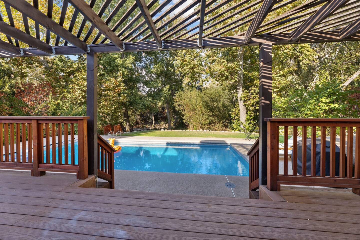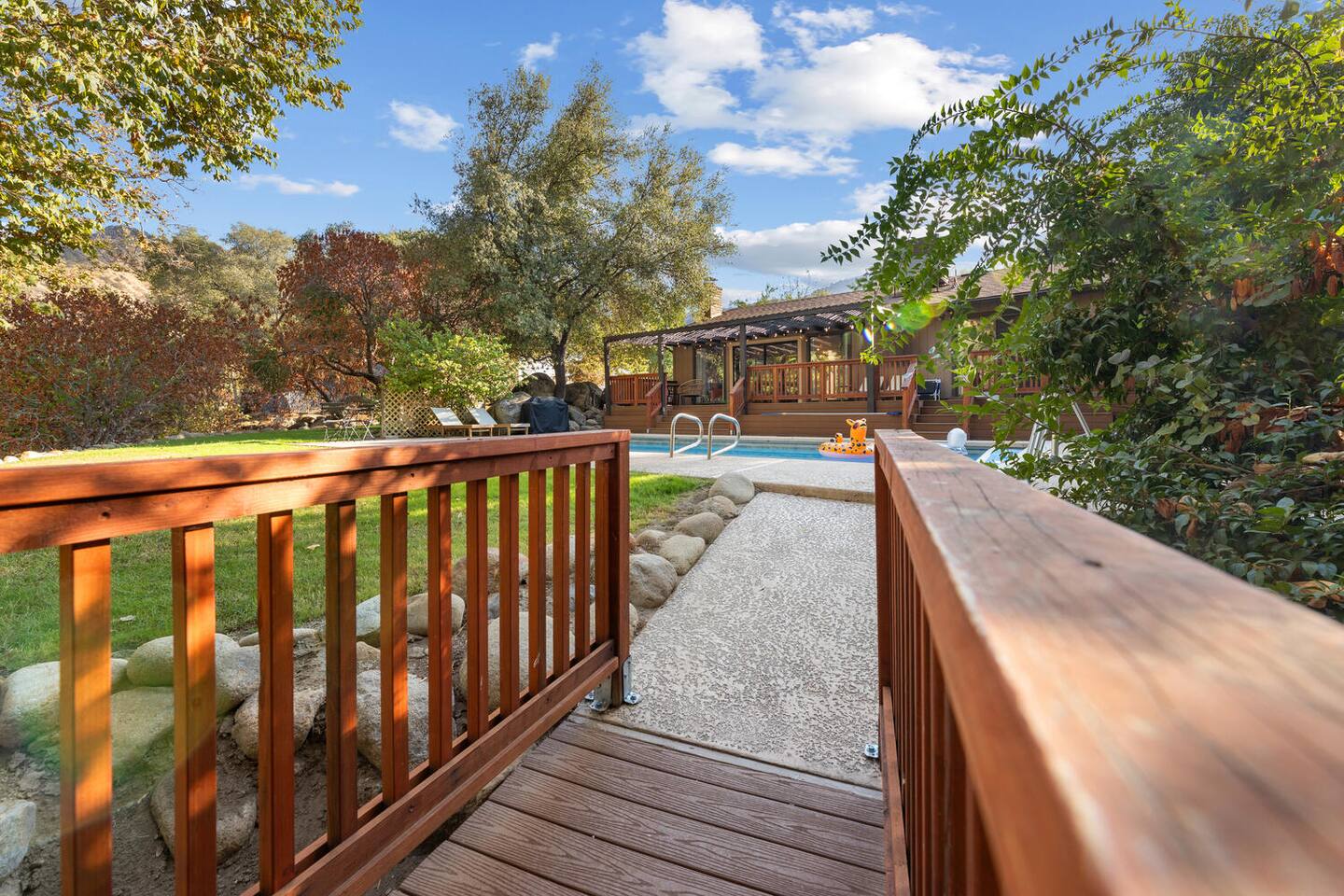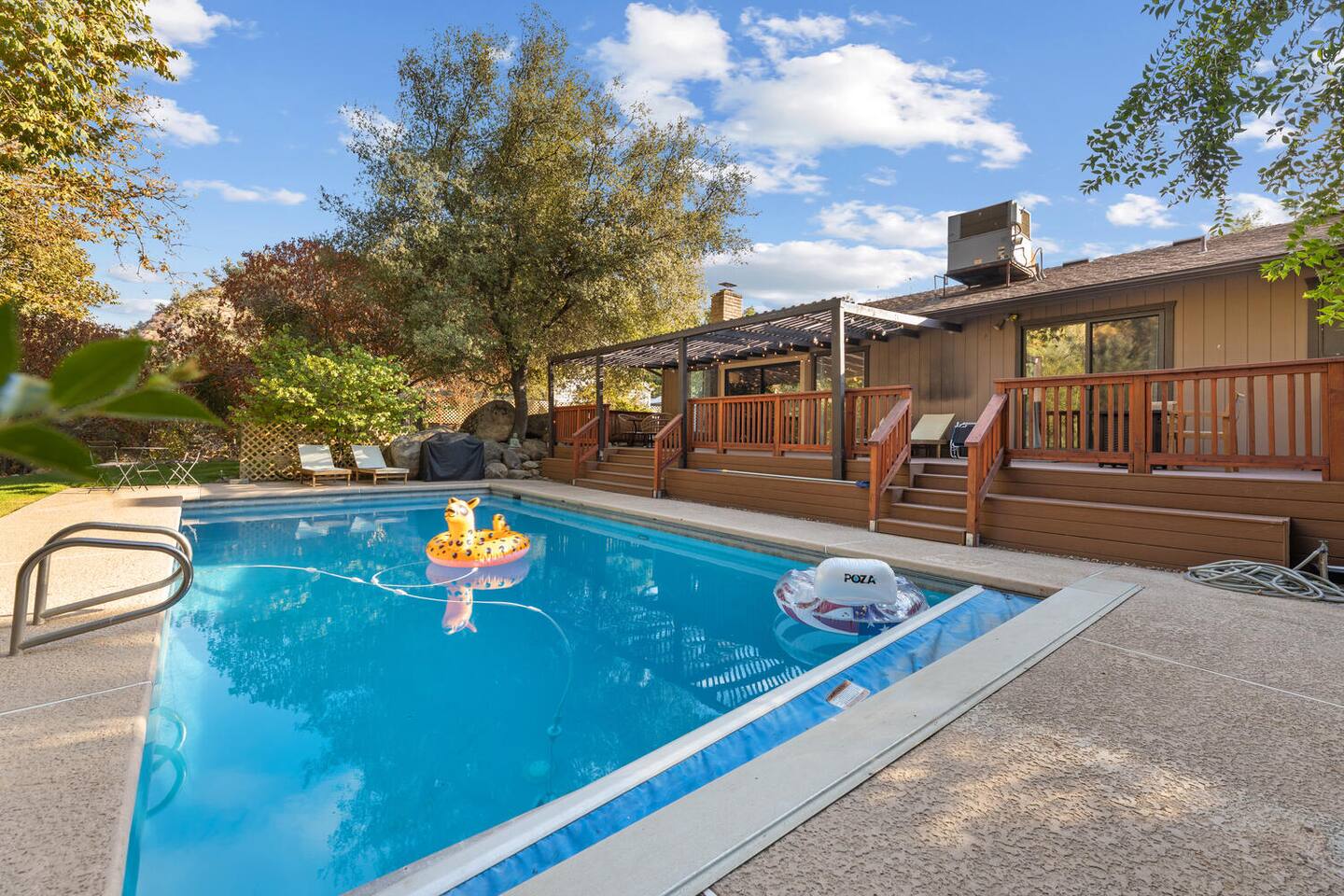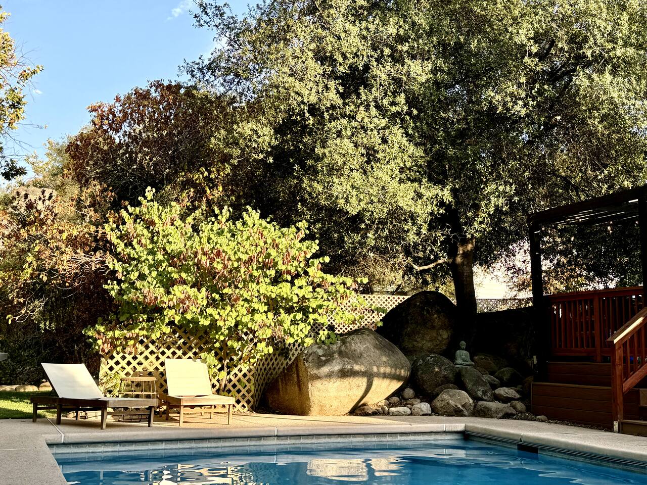 🌿 Zen River House — A Serene Retreat Near Sequoia National Park River Views | Pool & Jacuzzi | Family-Friendly | Nature-First Design Zen River House is a serene, organic retreat just minutes from Sequoia National Park, thoughtfully designed with an earthy, minimalist aesthetic that blends cozy comfort with intentional details—allowing the river, towering trees, and natural beauty to take center stage. This is a place to slow down, reconnect, and create meaningful memories—whether you’re soaking in the jacuzzi under the stars, enjoying quiet mornings by the river, or spending the day exploring Sequoia. ⸻ 🌟 Why Guests Love Zen River House • A restorative, nature-first experience • Clean, minimalist design that feels calm and intentional • Spacious property to relax without leaving the home • Unique touches—from vintage games to thoughtfully curated books • A perfect blend of simplicity, comfort, and natural beauty ⸻ 🛋 Living Space • Sink into a comfortable sofa while watching the sunset through towering trees and river views • Smart TV with Netflix included (use our account) • Warm, inviting space designed for connection and relaxation • Large, open layout perfect for families and groups ⸻ 🍳 Fully Stocked Kitchen & Dining • Pots, pans, cooking oils, herbs, and spices • Plates, cups, mugs, silverware, and all essentials • Designed for easy, stress-free meals at home • Open kitchen and dining area ideal for gathering ⸻ ☕ Coffee & Tea • Keurig coffee maker (single K-cup) • Selection of regular and herbal teas ⸻ 🧺 Laundry • Washer and dryer available for guest use ⸻ 👶 Child Safety Information (Please Read Carefully) Due to the unique natural features of the property, special child safety requirements apply. By booking this home, guests with children acknowledge and agree to the following: ⚠️ Natural Features on Property • Elevated deck areas • Seasonal creek • River access • Expansive outdoor space We intentionally highlight these features in the listing photos so families can determine whether this home is the right fit for their needs. Required Safety Rules 1. Children must never be left unsupervised anywhere on the property. • The property is large and includes river access. • If children are very young, they must remain in a parent’s arms when outdoors. • Children must remain supervised at all times, including when using a playpen. 2. No climbing on railings, outdoor furniture, or barstools. • This includes decks, seating, and any elevated areas. Failure to follow these safety guidelines may result in immediate termination of the stay without refund. ⸻ 🧼 Cleanliness & Care We take great pride in maintaining a peaceful, clean environment and ask guests to help us preserve the space: 1. Please leave Zen River House in reasonably tidy condition. • Excessive mess beyond normal use—may result in an additional cleaning fee to cover specialized cleaning. 2. To protect the light-colored textures and natural materials, we kindly ask that shoes be removed inside the home. • Spa slippers are provided for your comfort. • Thank you for helping us maintain the calm, clean atmosphere of the space. ⸻ 🌲 The Experience Zen River House is designed for guests who value peace, intention, and connection with nature. From morning coffee by the river to quiet evenings surrounded by trees, this home invites you to slow down and truly unwind—just minutes from the adventure of Sequoia National Park. ⸻ 📍 Location & Nearby Attractions • Sequoia National Park Entrance – approx. 15 minutes • Slick Rock Recreation Area – 2 minutes • Kaweah River access & swimming spots – nearby • Village Market, cafés & local shops – under 5 minutes • Hiking trails, river walks, and scenic drives close by Enjoy national park adventures by day and return to a quiet, restorative river retreat at night. ⸻ ✨ Final Note Zen River House is more than a place to stay—it’s an experience rooted in calm, connection, and nature. Every detail has been thoughtfully chosen to create a space where guests can breathe deeply, reset, and truly feel at home. Pool is not heated. If you’re seeking a stay that feels grounded, serene, and intentional, Zen River House welcomes you.